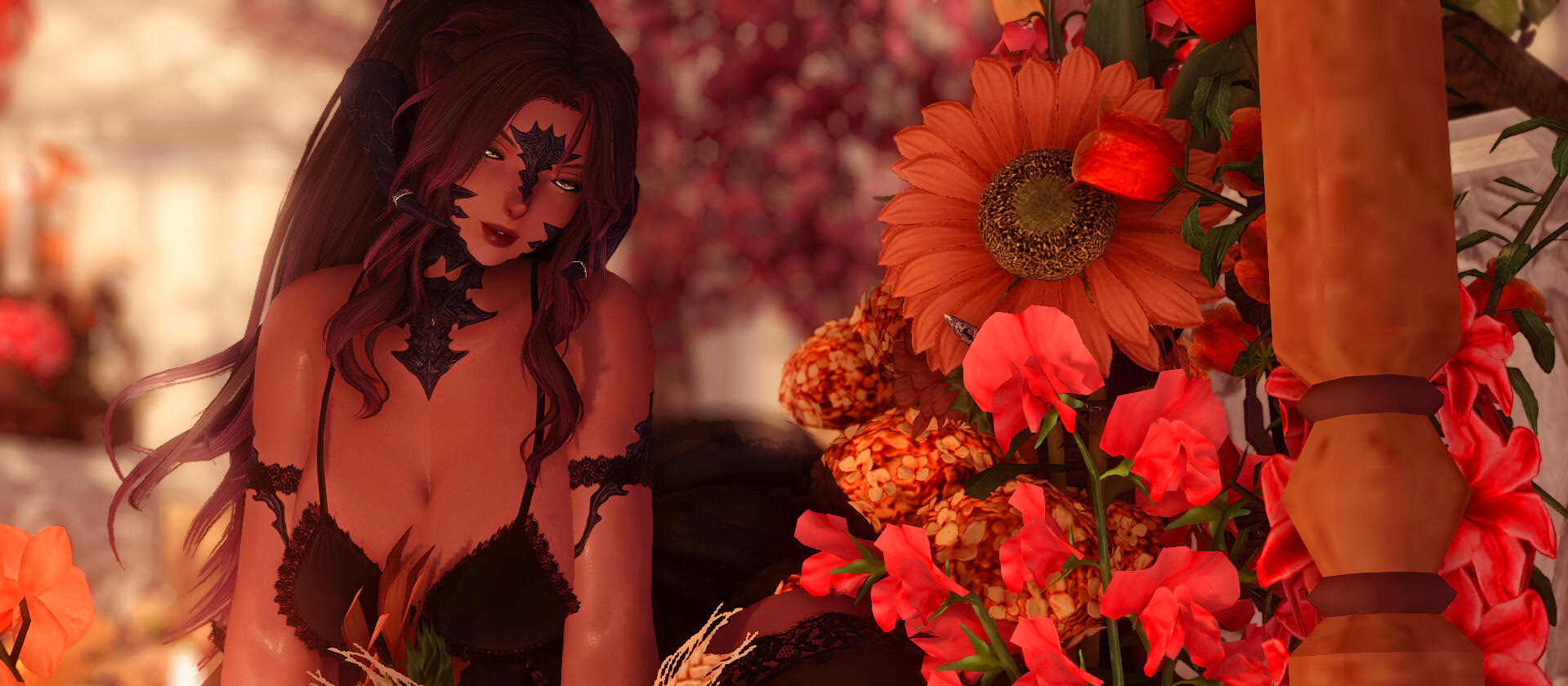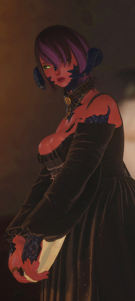 Their meeting was by random in Kugane. With a job finished, the golden dragon decided to reward himself with a soak in the springs. She was getting done with rewarding herself with a trip to the markets. His towering figure caught her eye and the two formed a unusual friendship after a long chat. He has since learned that her ambitions have no limits. The two eventually became business partners for her hostess club as an /investor/.