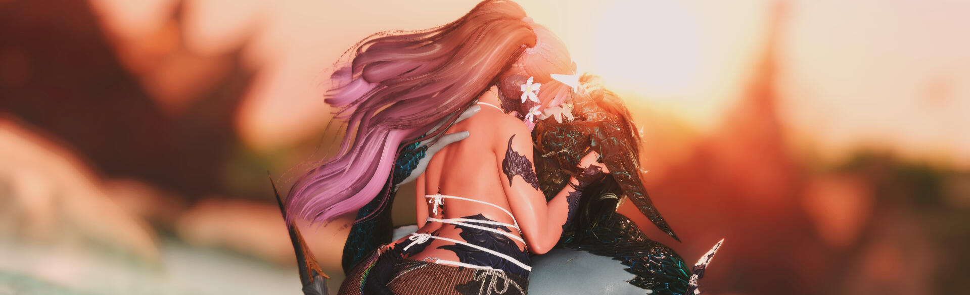The two had a rocky start, one more defensive then the other. First meeting during a low moment in her life. His teasing nature was not appreciated at first. She assumed he was making her out to be a joke. Feeling started to form between the two Xaelan after their countess run-ins with each other over time on their different adventures, eventually blossoming into a beautiful union