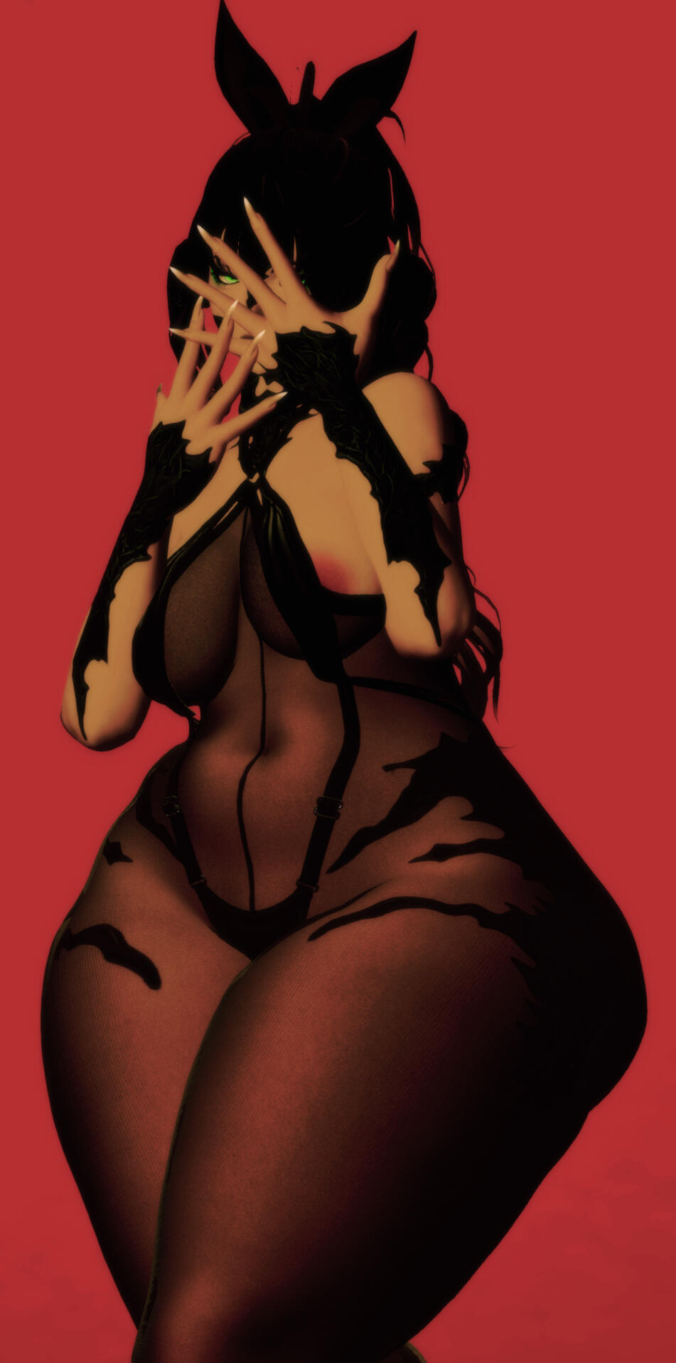 eyes Striking emerald with lite glowing green limbal rings.